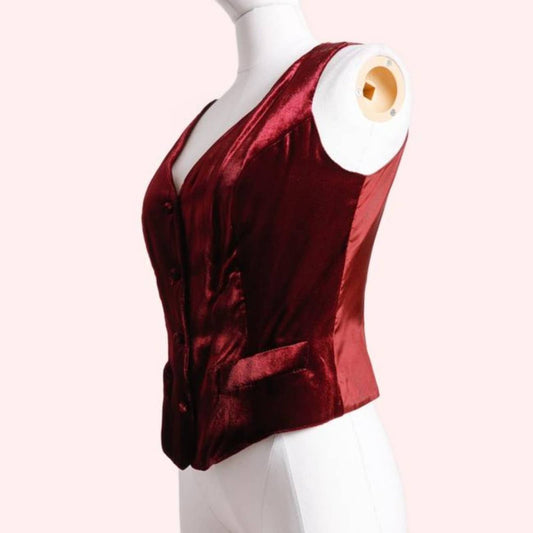 VINTAGE MARK EISEN Bordeaux Velvet Button Up Sleeveless Vest