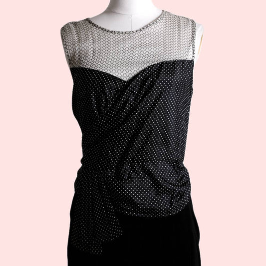 BAILEY 44 Black and White Polka Dot Sleeveless Silk Dress