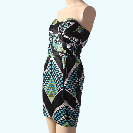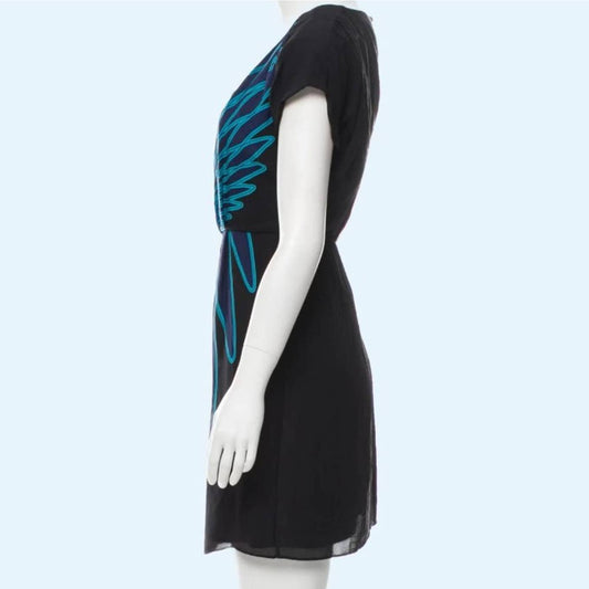 TIBI Geometric Printed Black and Turquoise Silk Dress