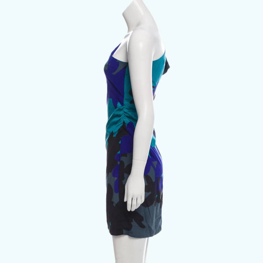 DIANE VON FURSTENBERG One Shoulder Blue/Multicolor Silk Printed Dress
