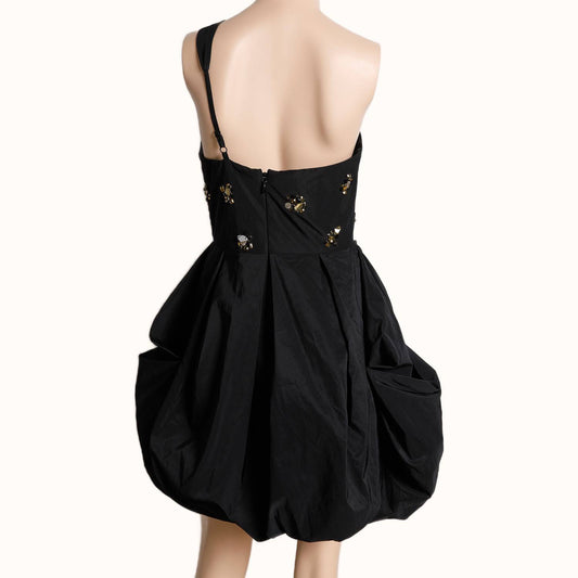 BCBGMAXAZRIA Black One Shoulder Embellished Cocktail Dress