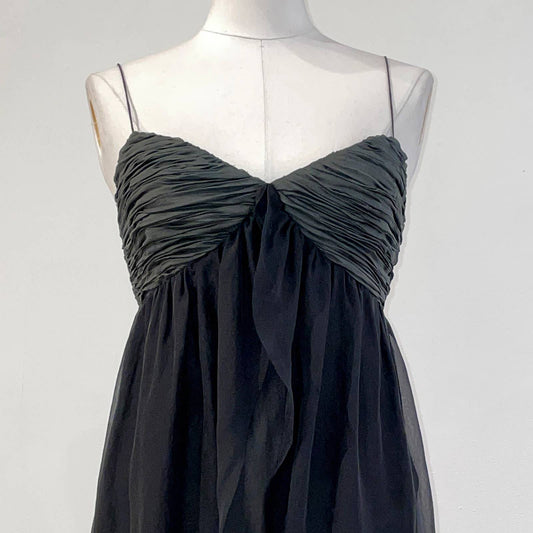 CATHERINE MALANDRINO Black Draped Silk Cocktail Dress