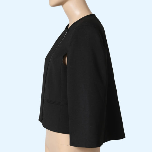 BCBGMAXAZRIA Cropped Asymmetrical Zip Black Cape Jacket