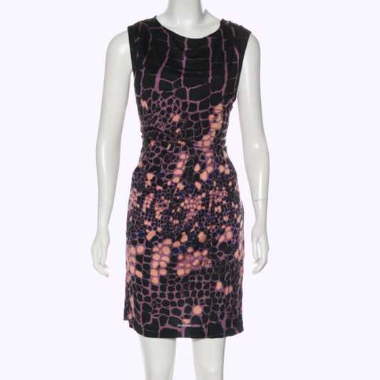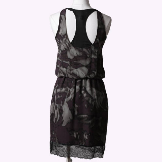 ROBERT RODRIGUEZ Purple and Black Printed Silk and Lace Trim Tank Dress