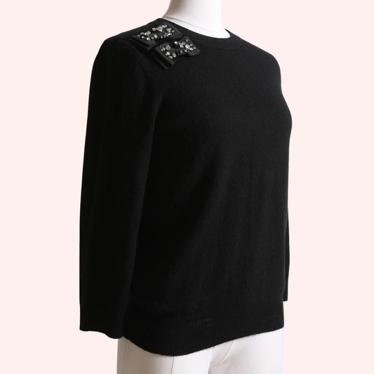 KATE SPADE NEW YORK Black Crew Neck Sweater With Crystal Bows