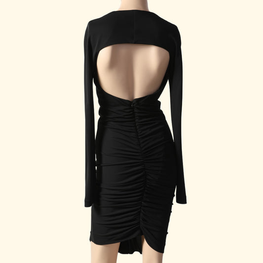 NICOLE MILLER Long Sleeve Knee-Length Black Ruched Dress