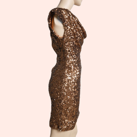 FRENCH CONNECTION Bronze Gold Sequin Mini Dress