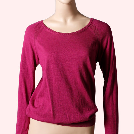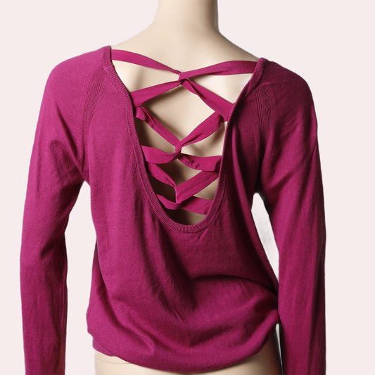 SANDRO Magenta Pink Braided Open Back Long Sleeve Silk Sweater