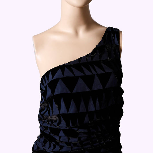 MARA HOFFMAN Blue and Black Textured One-Shoulder Ruched Mini Dress