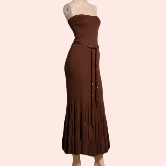 DIANE VON FURSTENBERG Brown Strapless Maxi Dress