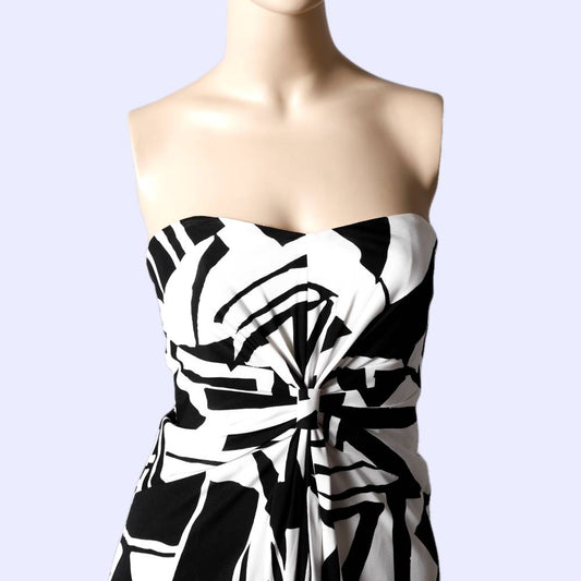 DAVID MEISTER Black and White Strapless Geometric Patterned Dress