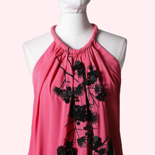 ROBERT RODRIGUEZ Pink Embellished Halter Dress
