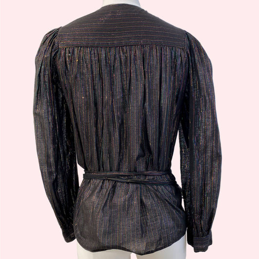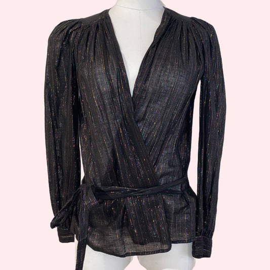 MAJE Metallic Threaded Long Sleeve Cotton Wrap Blouse