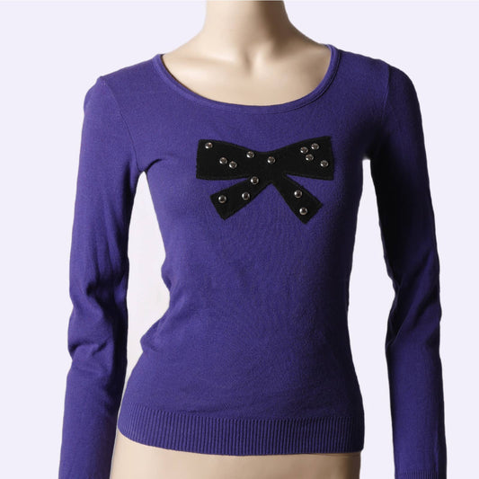 SONIA BY SONIA RYKIEL Violet with Black Pearled Bow Long Sleeve Sweater