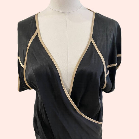 BCBGMAXAZRIA Black with Gold Lining Short Sleeve Silk Blouse