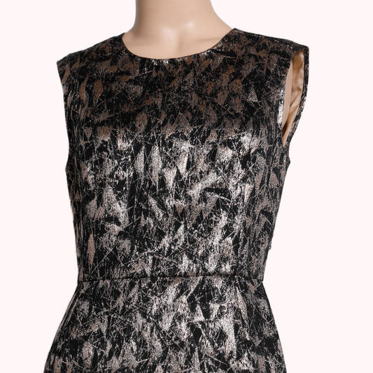 TIA CIBANI Gray and Gold Metallic Printed Sleeveless Dress