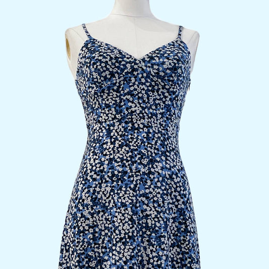 MICHAEL KORS Blue and White Floral Sleeveless Maxi Dress