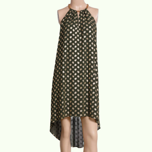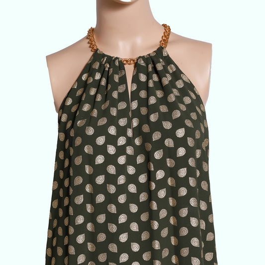 MICHAEL KORS Printed Gold Khaki Dress with Gold Chain