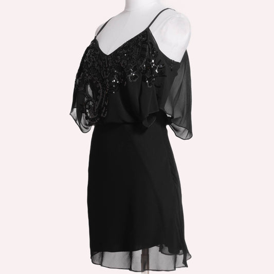 KAREN MILLEN Black Sequin Draped Sleeveless Silk Dress