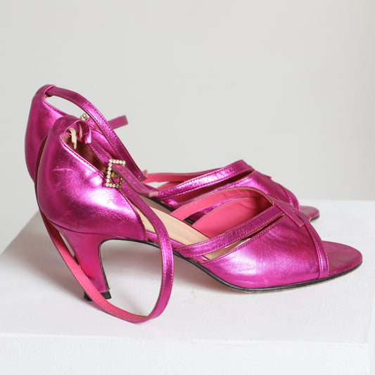 RICH FASHION Hot Pink Metallic Open Toe Leather Sandals