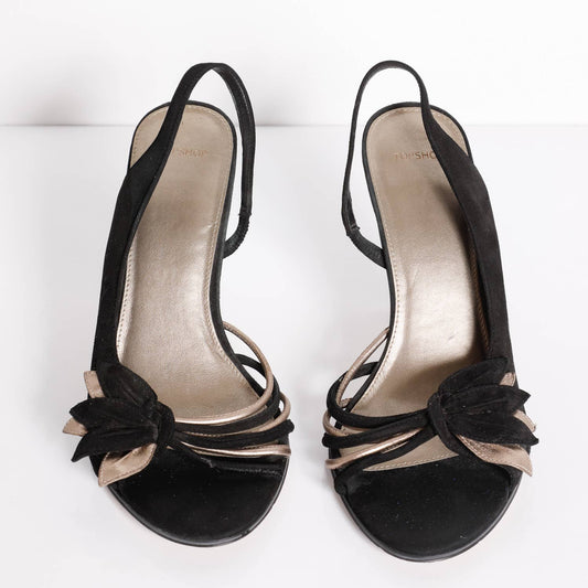 TOPSHOP Vintage Black Suede and Metallic Gold Kitten Heels