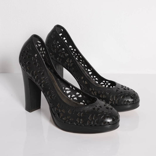 TOPSHOP Vintage Black Leather Cut Out Pumps