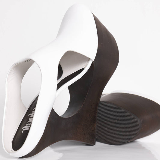 ILANIO White Leather And Wood Retro Cutout Platform Shoes