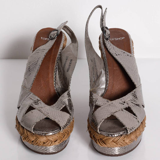 TOPSHOP Vintage Silver Metallic Snakeskin Platform Sandals