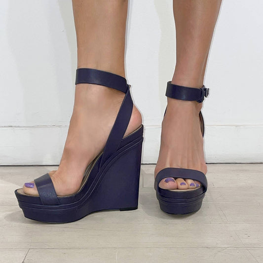 BCBGMAXAZRIA Purple Leather Wedge Platform Sandals