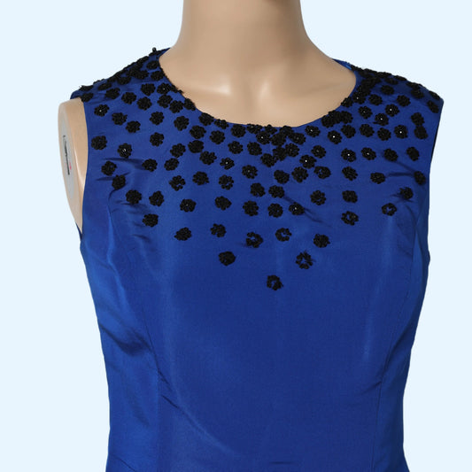 JASON WU Blue Satin Mini Dress With Black Embellishments
