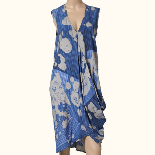 ZERO + MARIA CORNEJO Blue Silk Multicolor Abstract Patterned Dress