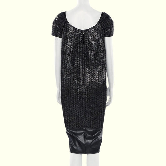 MARC JACOBS Black & Metallic Midi Length Leather Dress