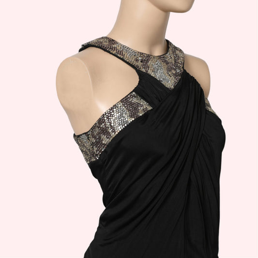ROBERTO CAVALLI Black Halter Mini Dress With Embellished Neckline