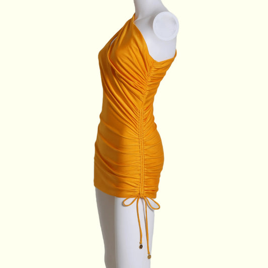 DUNDAS Yellow Orange One-Shoulder Cut Out Mini Dress