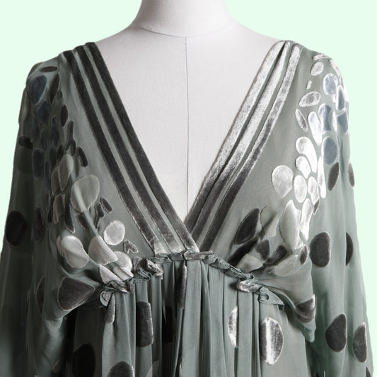 BCBGMAXAZRIA RUNWAY Turquoise Patterned Silk and Velvet Vintage Y2K Dress
