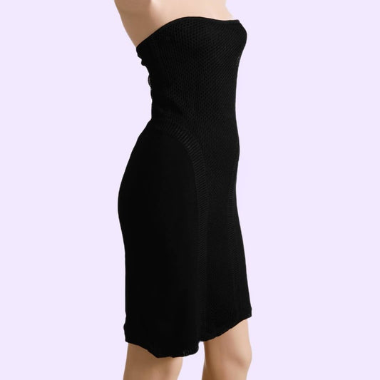 GIVENCHY COUTURE BY ALEXANDER MCQUEEN Vintage 90s Black Knit Strapless Dress