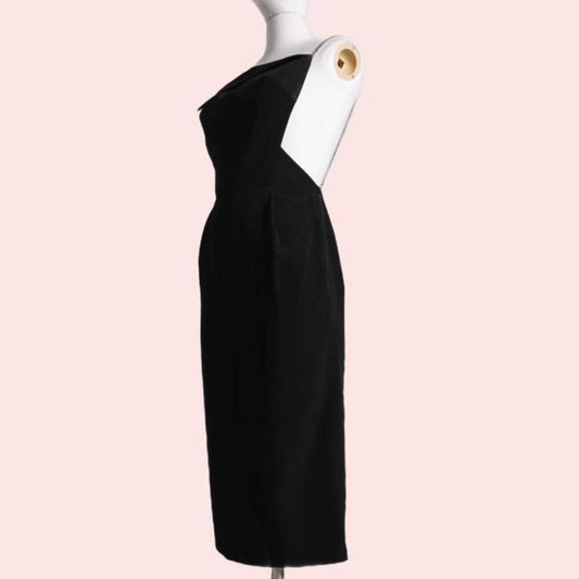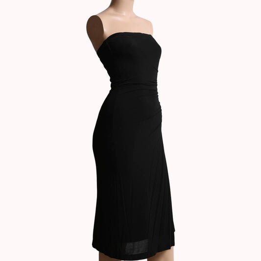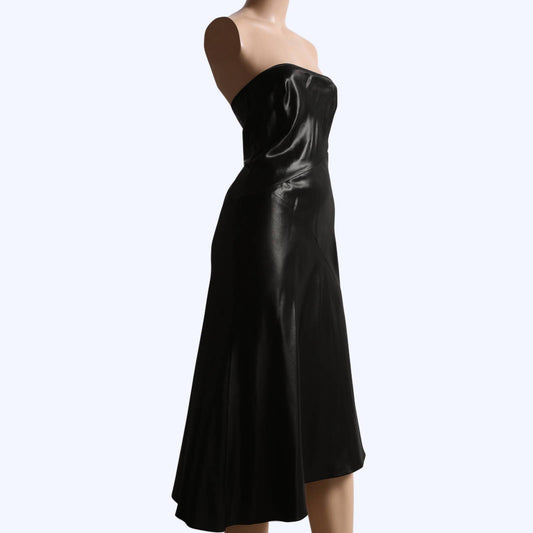 PLEIN SUD Vintage Black Silk Asymmetrical Strapless Midi Dress