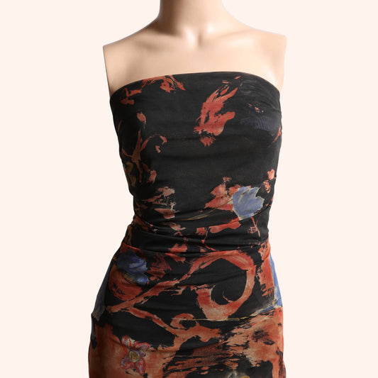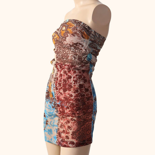 PLEIN SUD JEANS Vintage Multicolor Printed Mesh Strapless Bodycon Dress