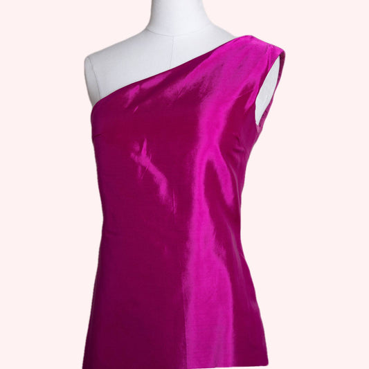 MALAN BRETON Fuschia Pink One Shoulder Silk Maxi Dress