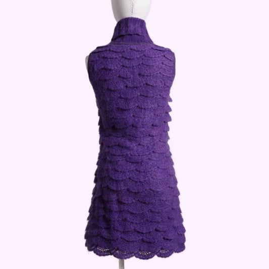 MALANDRINO Violet Purple Turtleneck Ruffled Wool Sweater Dress