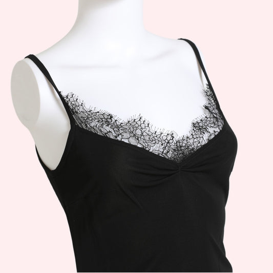 YMAYABA Black with Lace Neckline Vintage Midi Dress