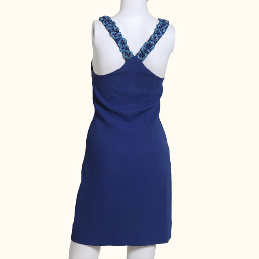 MATTHEW WILLIAMSON Blue Halter Mini Dress With Floral Embellishments