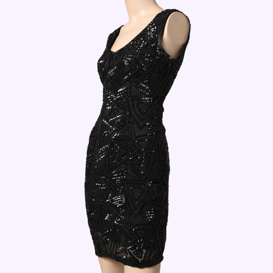 LUCY PARIS Black Sequin Pattern Embellished Sleeveless Dress