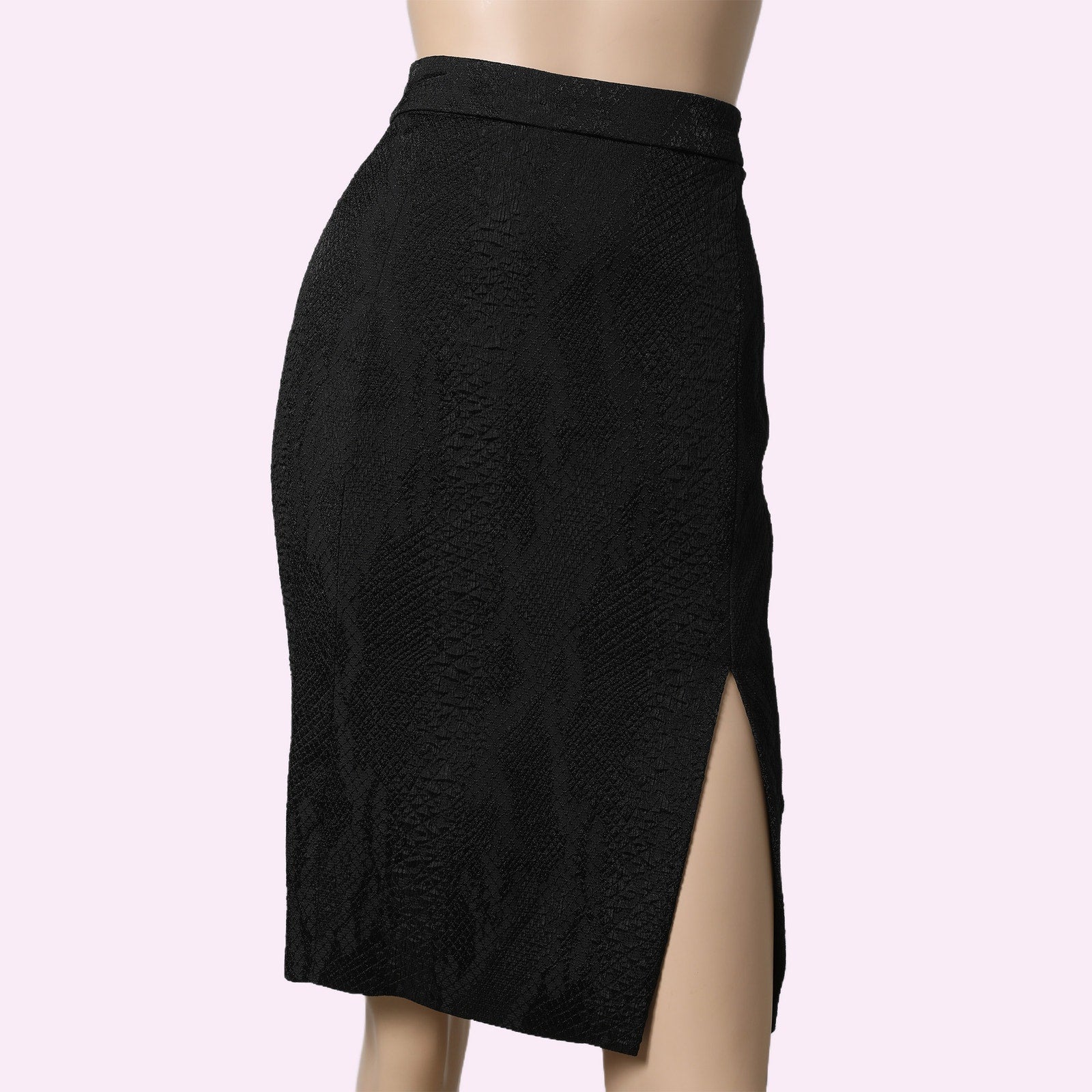- Black Pencil Skirt, Side Slit at Bottom