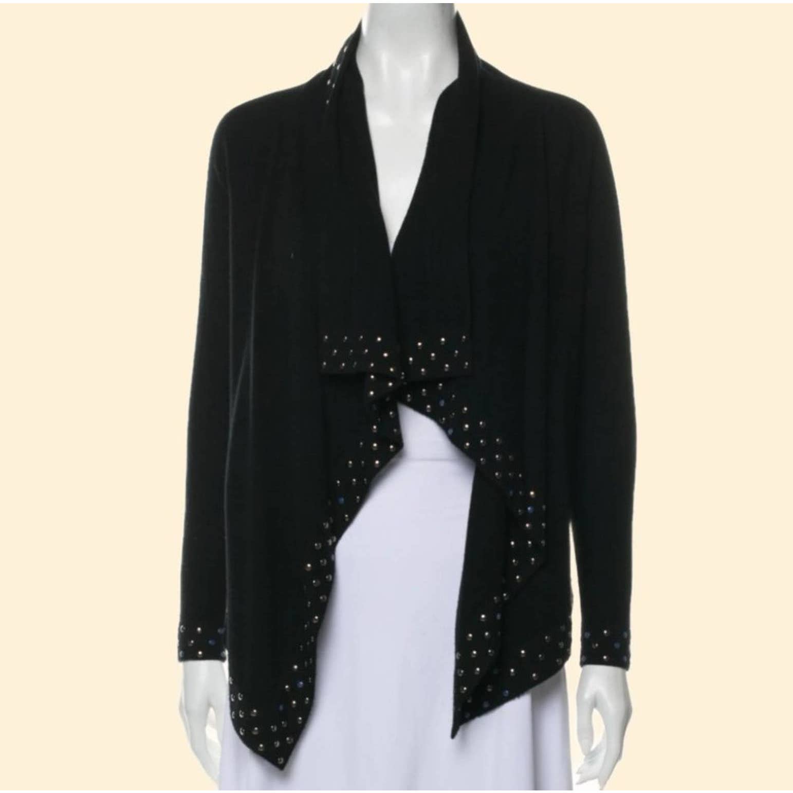 AUTUMN CASHMERE Black Studded Long Sleeve Cashmere Cardigan