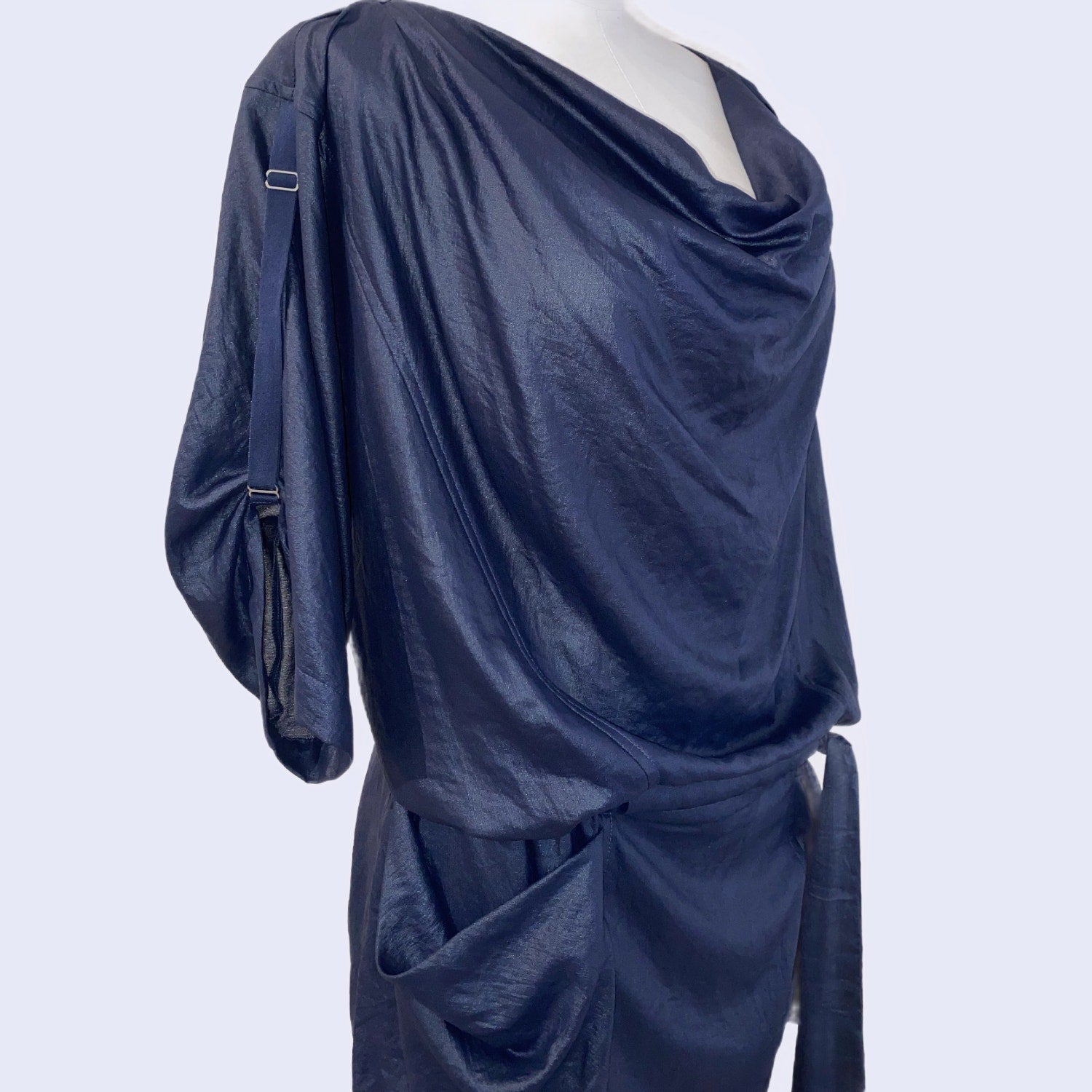BCBGMAXAZRIA Blue Draped Short Sleeve Vintage Y2K Dress