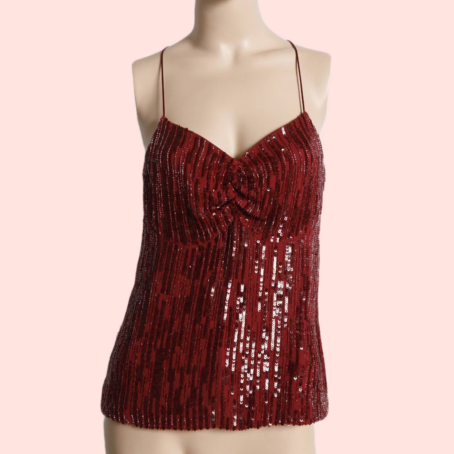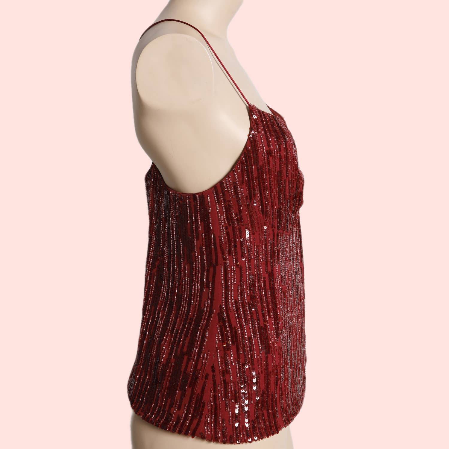 CHRISTIAN BLANKEN Red Sequin Spaghetti Strap Top