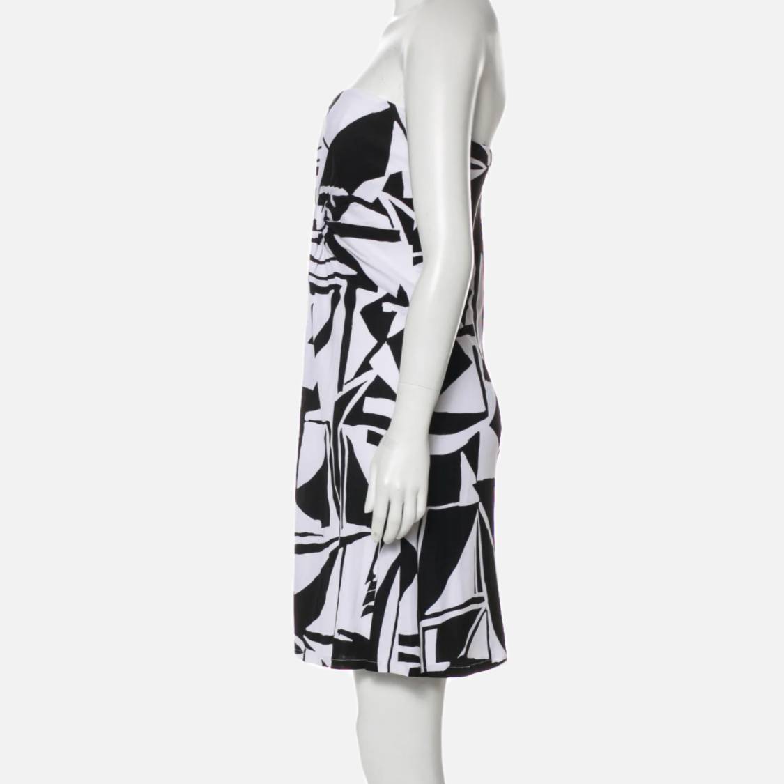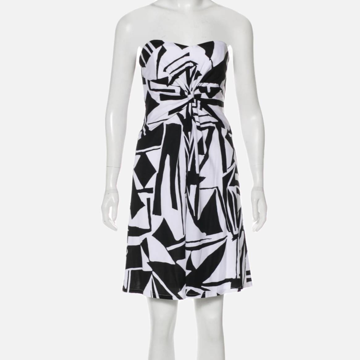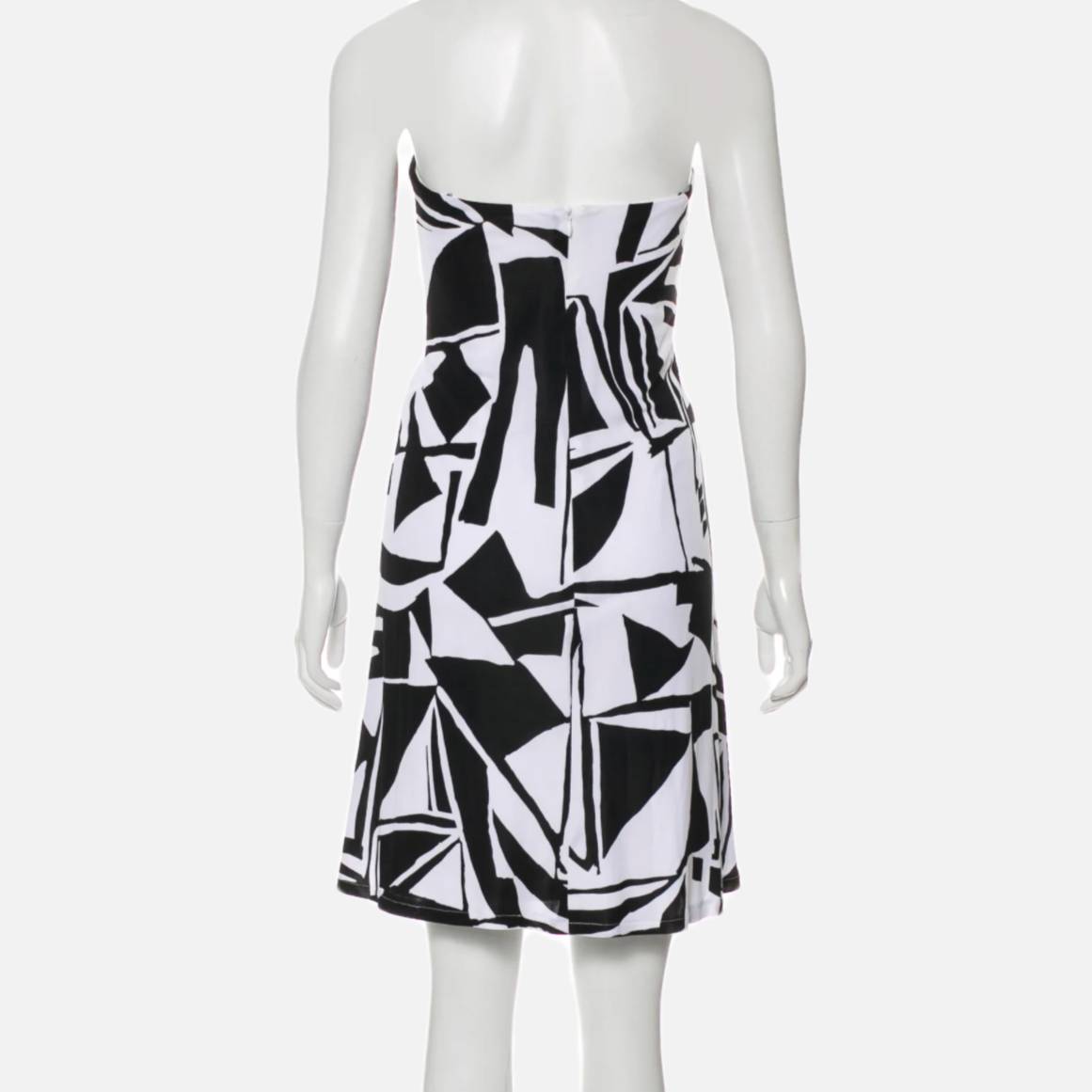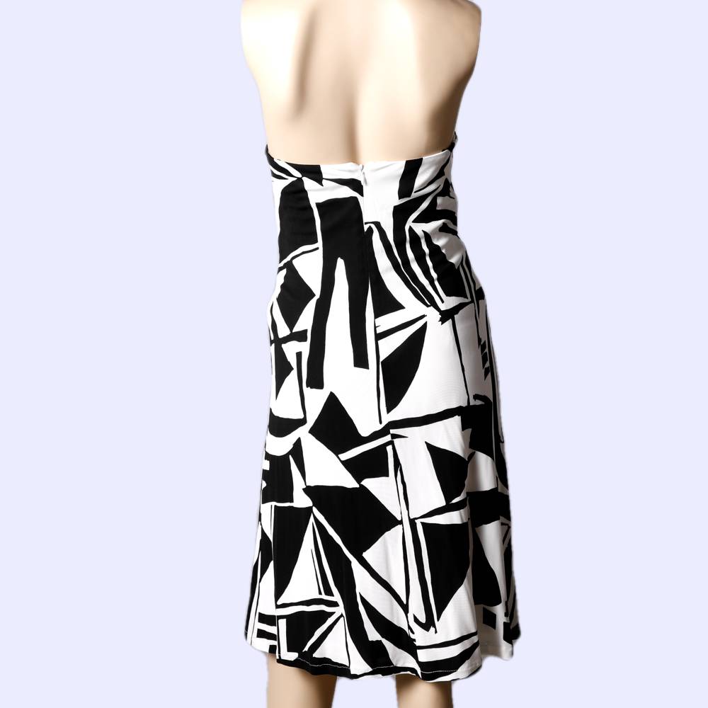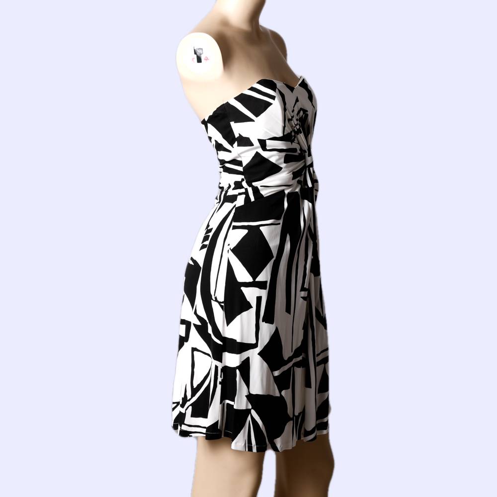 DAVID MEISTER Black and White Strapless Geometric Patterned Dress