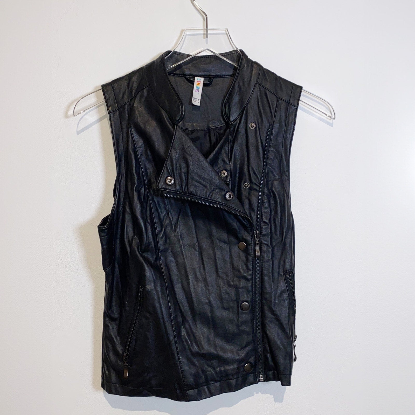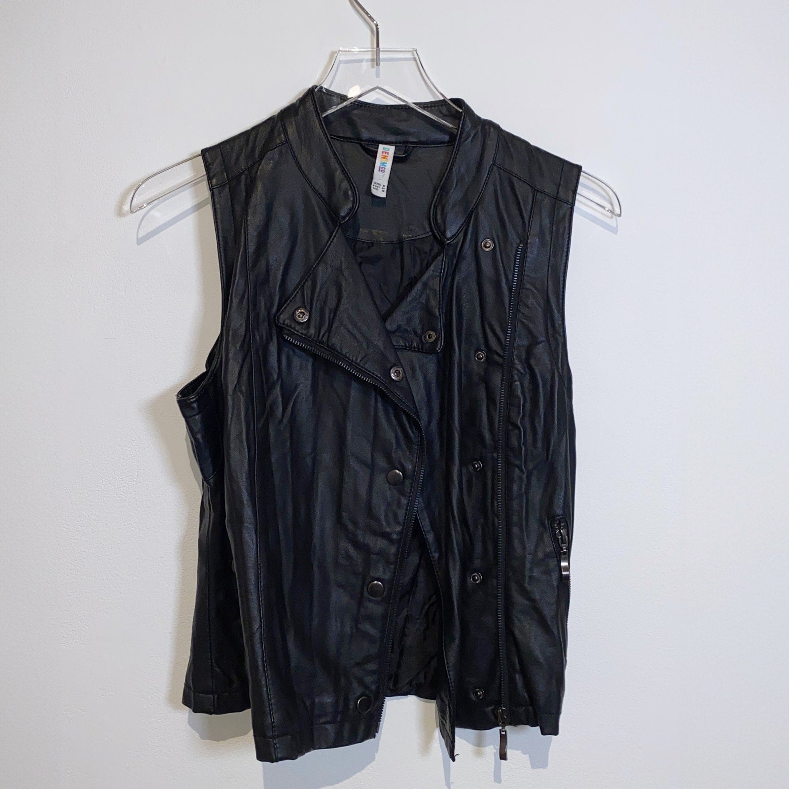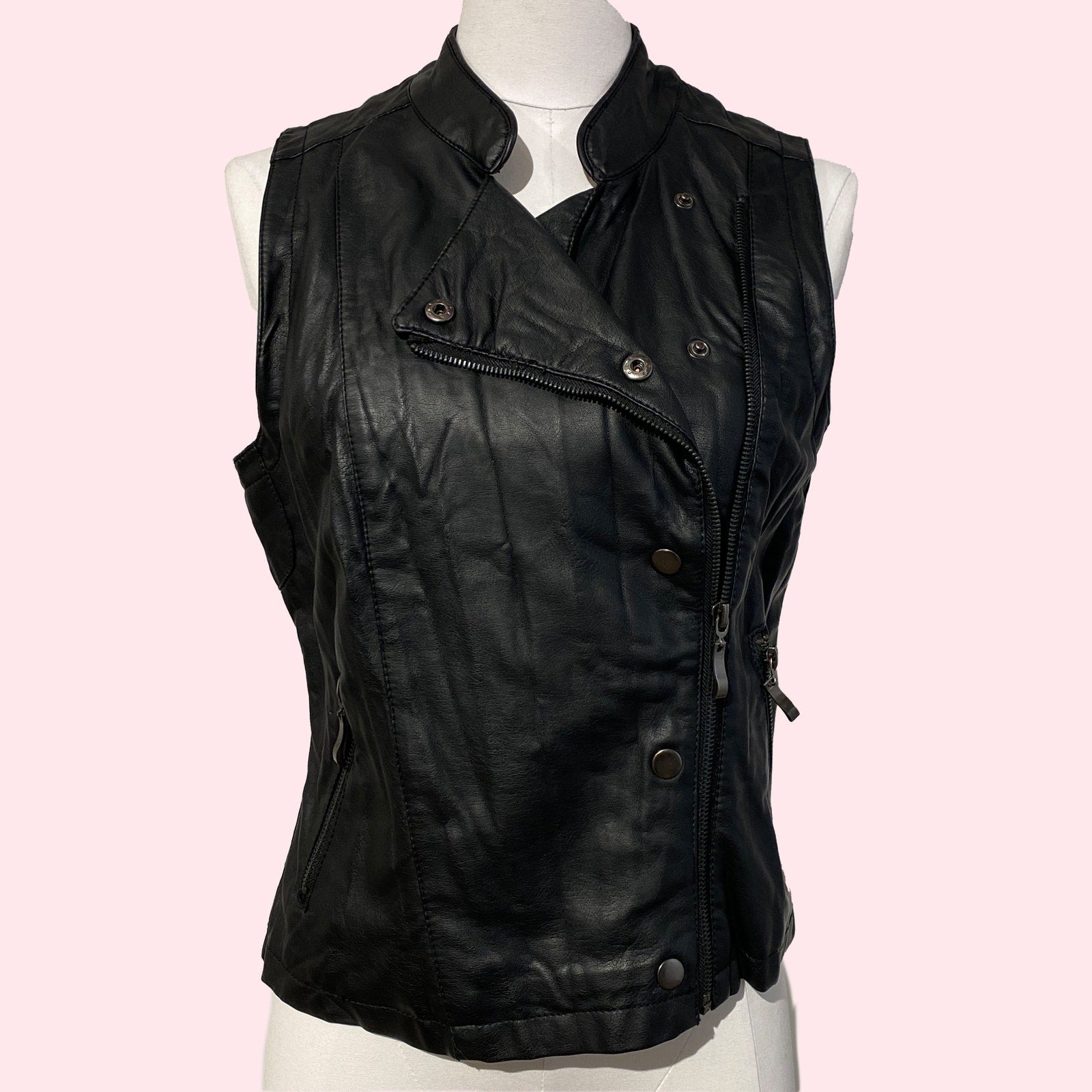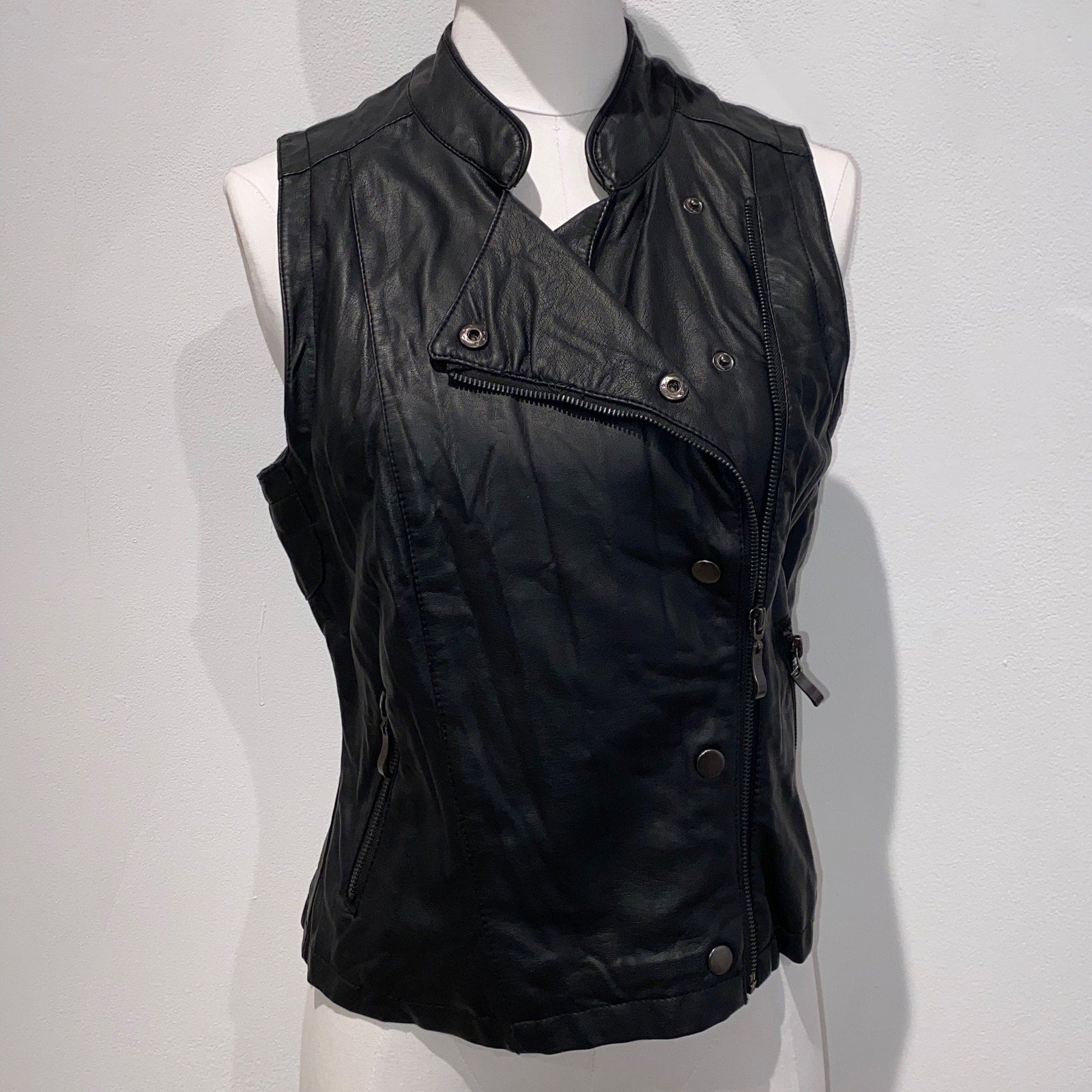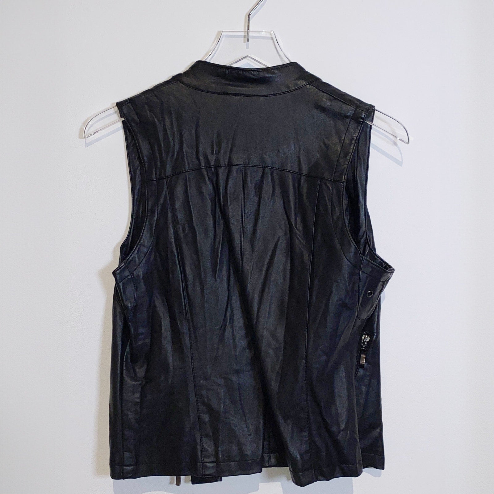 DENIM CO Vintage Leather Vest with Zips and Snaps