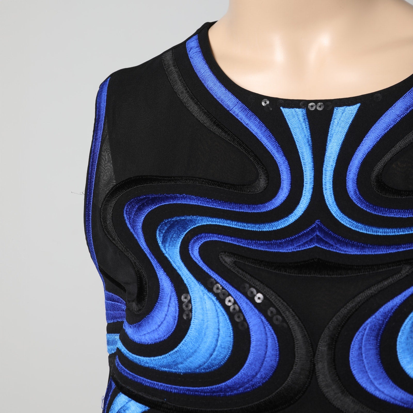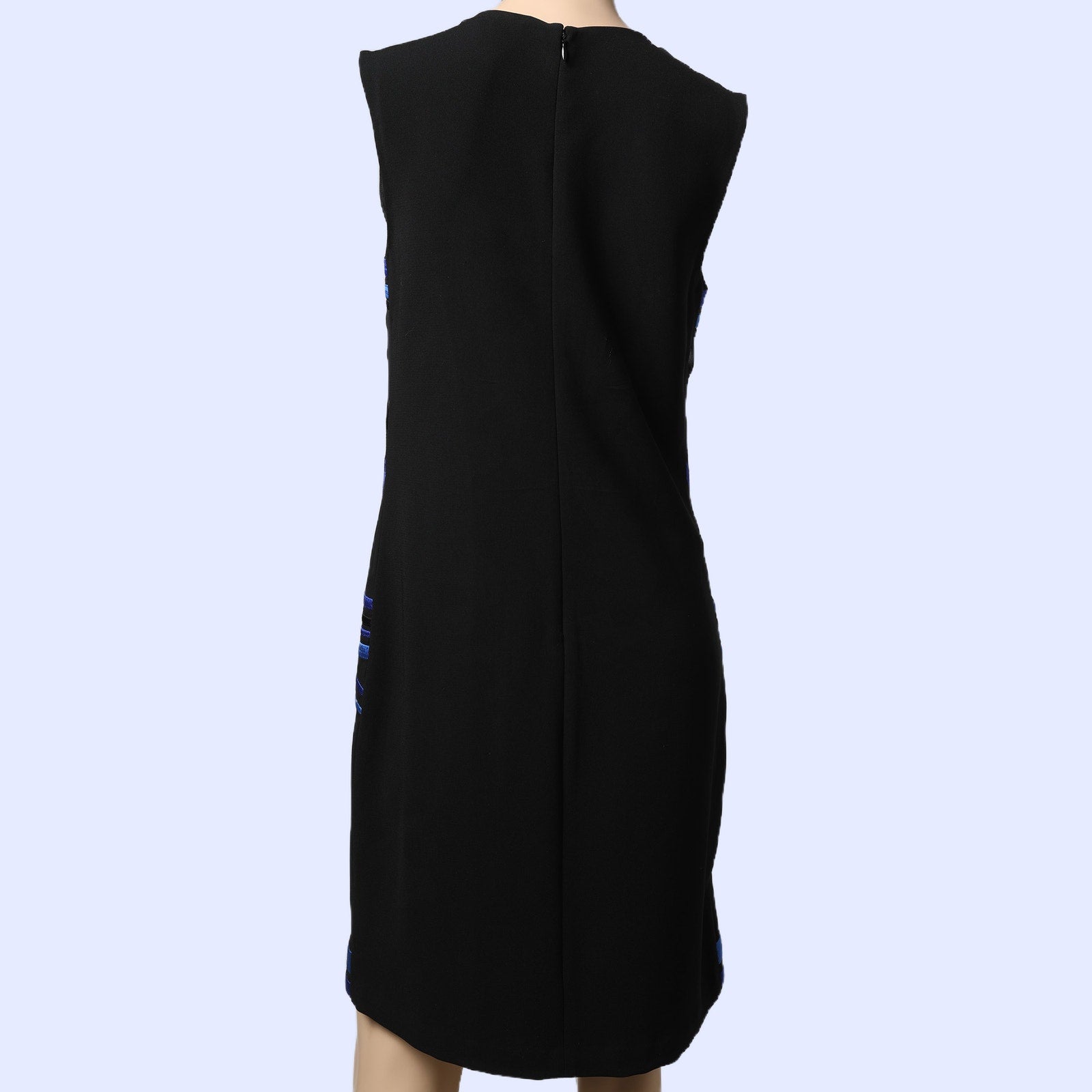 DIANE VON FURSTENBERG Black & Blue Abstract Embroidered Sleeveless Sheath Dress